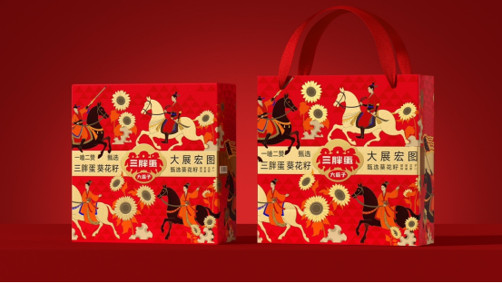 2025年三胖蛋新春礼品礼盒品鉴会,重点聚焦产品升级,以“产业赋能+文化赋能+视觉赋能”构建高端竞争壁垒:在产品端,深度绑定向日葵全产业链,通过立体式工艺凸显原料质感,搭配多元组合形态,将全产业链优势转化为高端产品硬实力;在文化端,锚定新春消费场景,深挖品牌原产地基因——作为内蒙古企业,将“蒙古马精神”与马年美好寓意深度融合,既以“稳扎稳打”彰显全产业链的深厚底气,以“一马当先”传递创新突破的发展魄力,更借“马上夺魁”“马到成功”“龙马精神”的吉祥寓意,呼应国人对新春顺遂的期盼,同时紧扣春节“嗑点好瓜子”的民俗需求,传递大富大贵、大吉大利、阖家团圆的情感共鸣;在视觉端,以红色烘托节日喜庆氛围,用金色强化高端视觉冲击,精准契合中国人对节日礼品“颜值与内涵兼具”的需求。