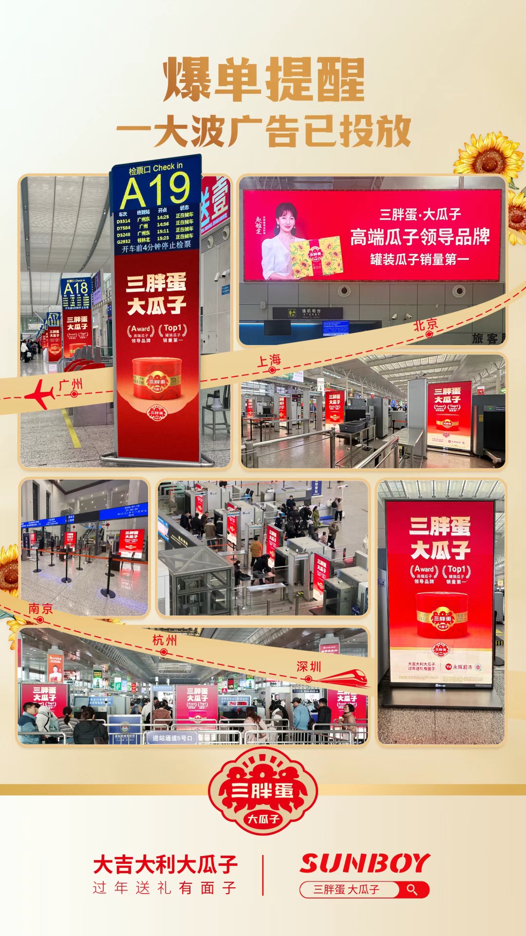 随着新年脚步的临近,春运即将拉开帷幕,一场红色年味风暴正席卷全国核心高铁站。从北京南站到上海虹桥,从深圳北站到西安北站,“三胖蛋”的身影随处可见,高端瓜子领导品牌携“大吉大利大瓜子”的新春祝福,成为归乡人流中最亮眼的风景。